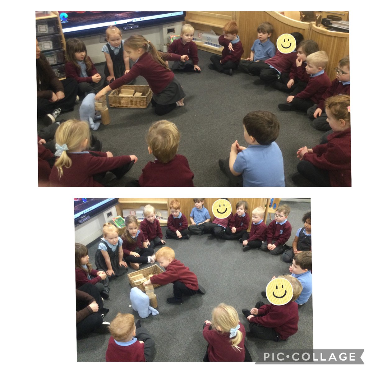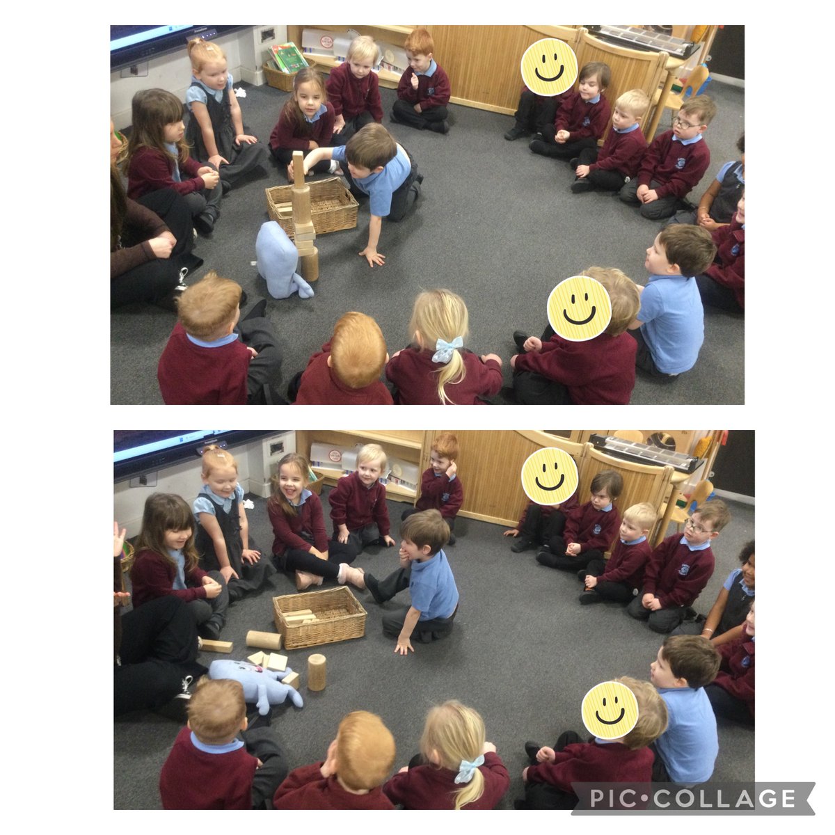 In PSHE Nick Butterworth class helped Jigsaw Jenie who says ‘I’m not sure how to do it but I’ll have a go at building a tall tower’. The children encouraged and helped Jenie to not give up and have another go at building her tower when her tower fell down.